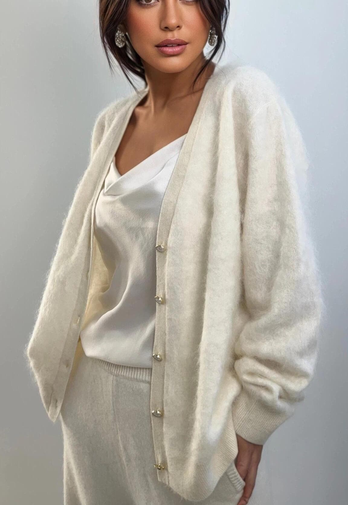 Cashmere Wool Blend Loungewear Set: Sparkling Beads, Adjustable Straps