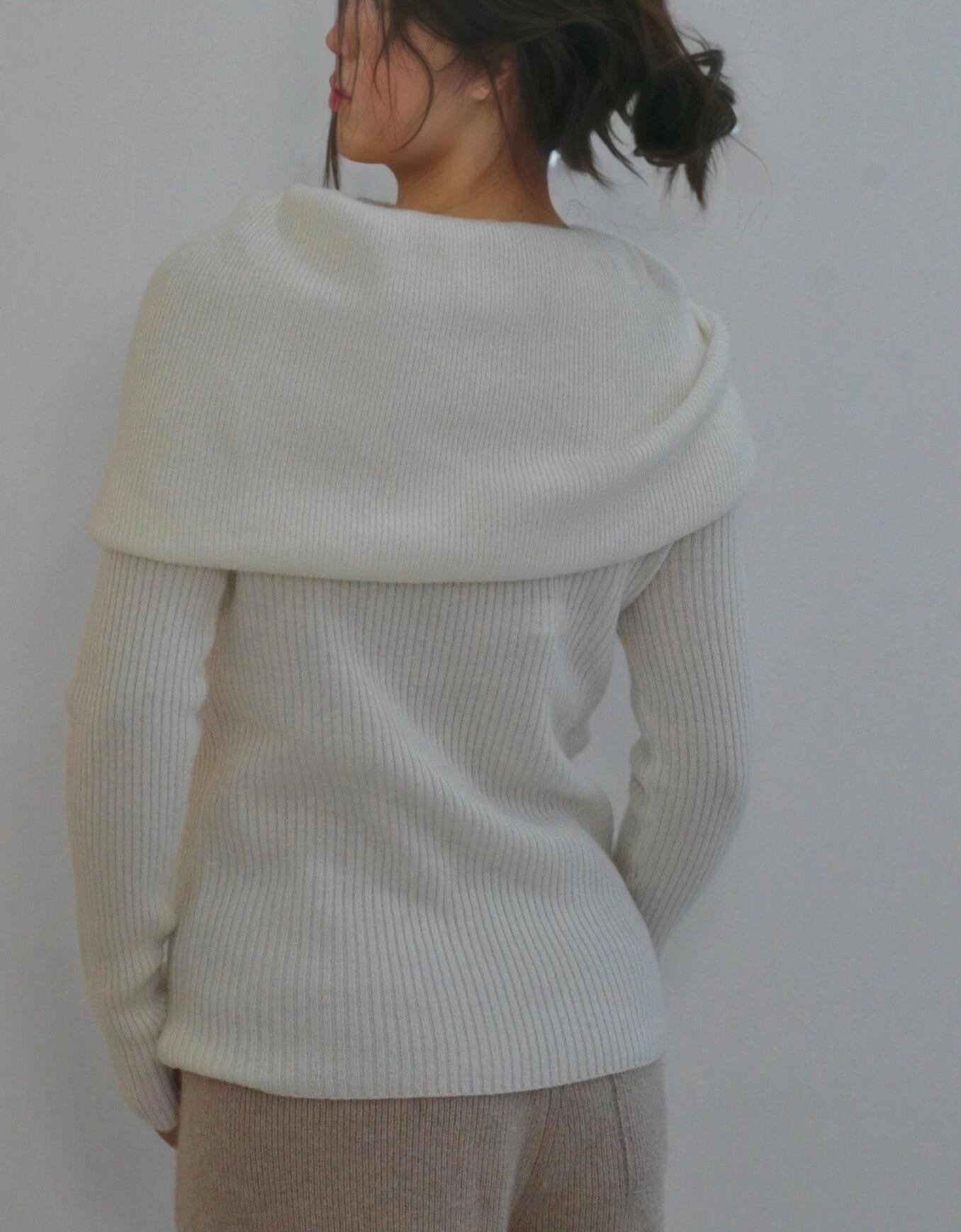 Crafted from a luxurious cashmere and wool blend, this knit sweater offers exceptional softness, warmth, and breathability. The elegant asymmetric neckline drapes naturally across the shoulder, creating a relaxed yet sophisticated silhouette.